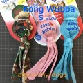 | KONGWubba Sサイズ コング部分は長さ9cm直径が約5cm 4本のリボンの部分が12cm 2個の大きさの違うボールを上下に重ね、丈夫な生地で包みました。 |